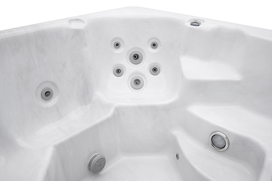 Things can be so simple: Alpine is a very efficient single lounger spa, seating five in comfort. Ergonomically molded massage seats, well positioned massage jets, separately controllable massage zones and molded headrests create a simply comfortable package.